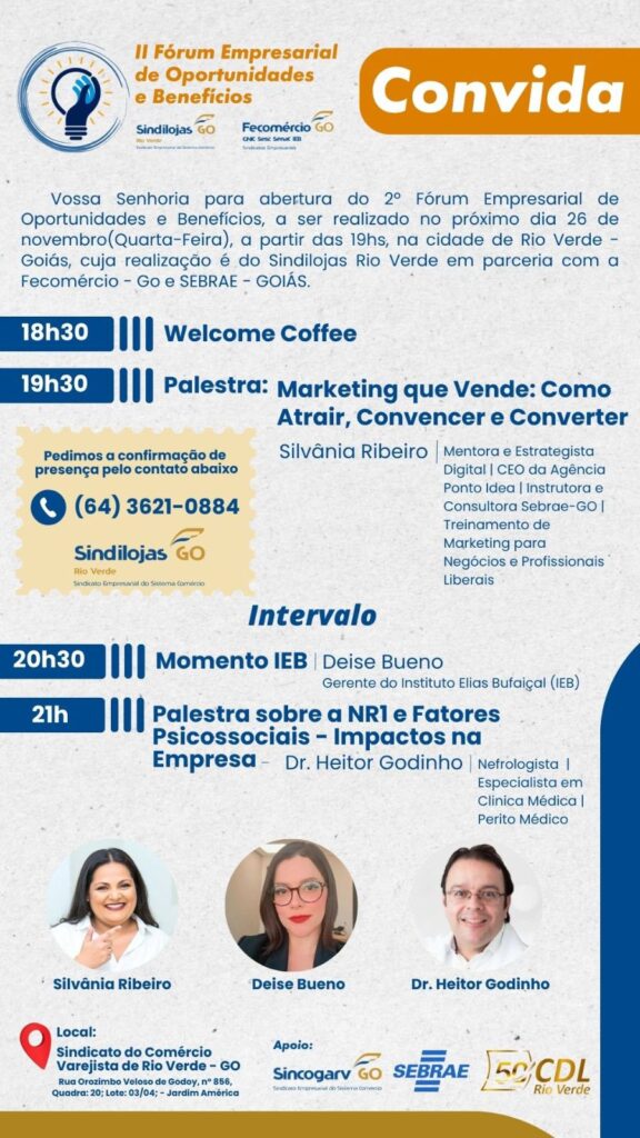 No dia 30/01/2025 as 08:00 no café com Associados, o SindiLojasRV esteve presente e prestigiando a palestra dos palestrantes CARLOS ADRIANO, conselheiro do Governo Federal e REBECCA FROIS, Key-Account SP Brasil.